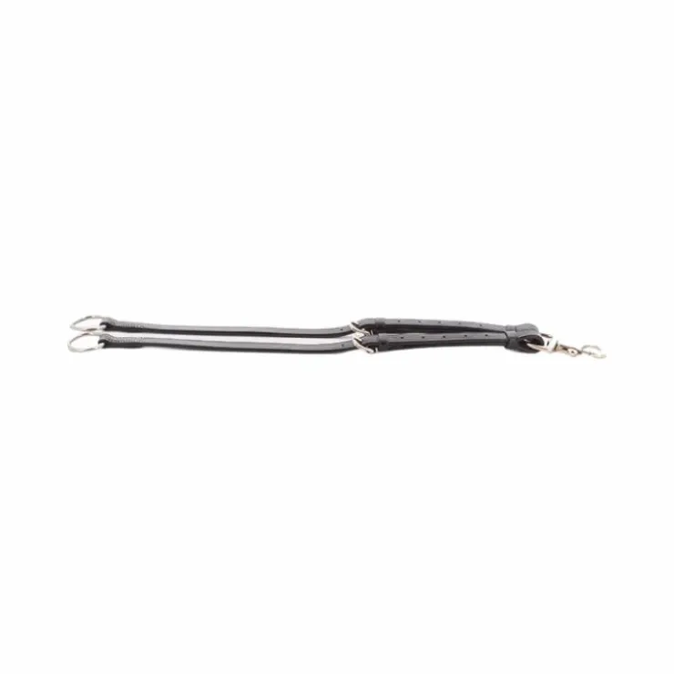 • La martingale à anneaux est un enrênement constitué de 2 courroies : l’une se fixe d’un côté à la sangle et de l’autre côté elle se sépare en 2 parties munies d’anneaux qui coulisseront dans les rênes.