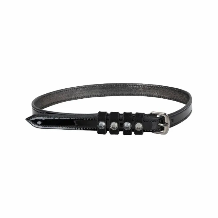 - Cuir verni et inserts strass pour briller en concours !