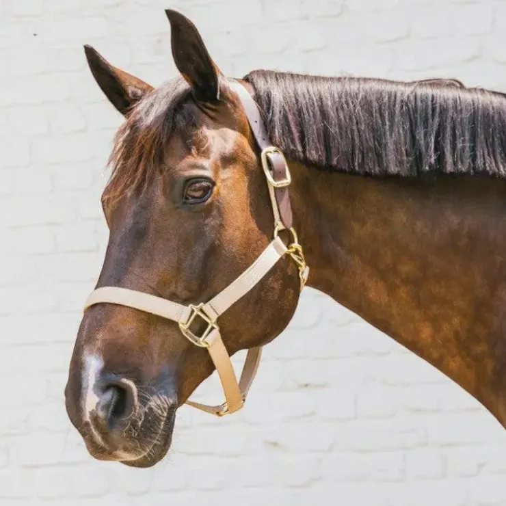 • Pour des raisons de sécurité, si un cheval venait à paniquer, le licol céderait à l’endroit où vous l’attachez sur le côté de la tête, des têtières individuelles sont disponibles à la vente pour venir en remplacement de celle qui serait cassée