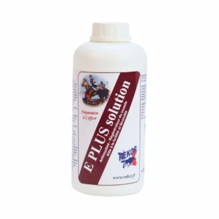 - E Plus solution est un complément alimentaire diététique idéal pour la préparation à l’effort. Antioxydant, régénérateur du muscle, aide à la fertilité et à la fécondité. E Plus solution de Rekor favorise l’intégrité musculaire et la récupération rapide lors d’un travail intense.