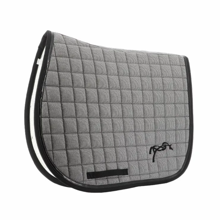 - Ce tapis est doté d’une belle découpe de dos qui perme un dégarottage optimal et facile. Il a aussi un passant de sangle de chaque côté pour améliorer la fixité du tapis sur le dos du cheval et un joli tissu nid d’abeille sert de doublure pour absorber la transpiration.