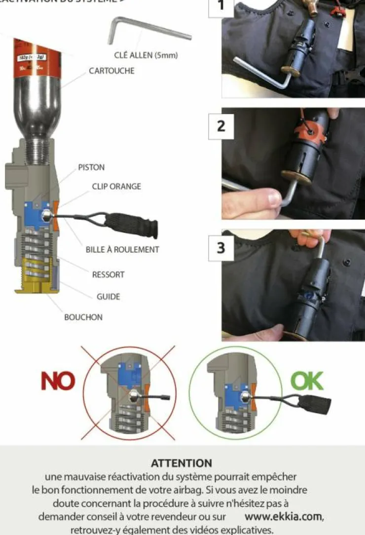 - Le modèle de la cartouche pour les gilets airbag Pénélope et Equithème est déterminé par la taille du gilet, il est donc impératif de remplacer la cartouche à l’identique.