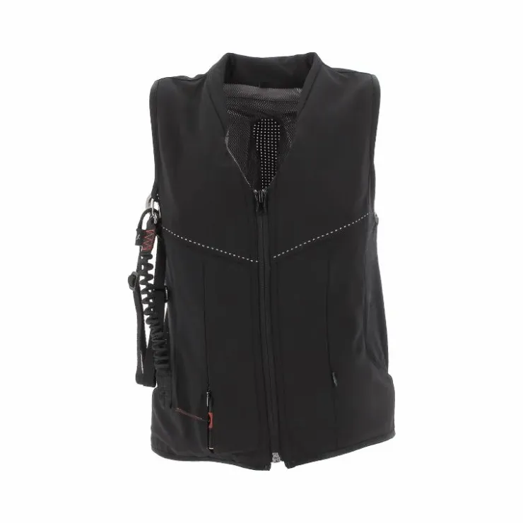 - Il est également doté d’une protection latérale continue qui permet un maintien de l’alignement du tronc; avec le gilet airbag Airlight, le port d’un casque d’équitation certifié est essentiel pour une protection plus optimale du cavalier.