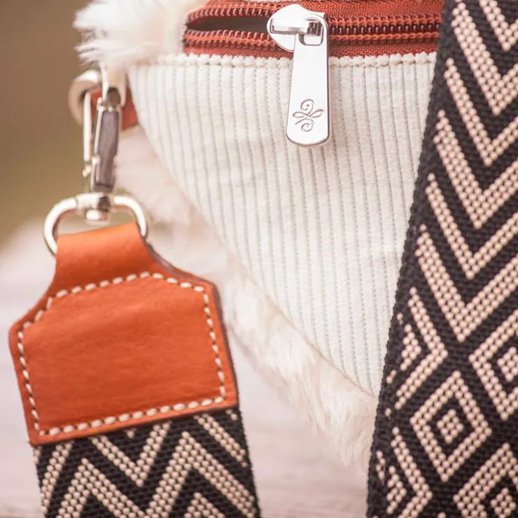 • Sur le devant, un losange en cuir avec le logo de la marque