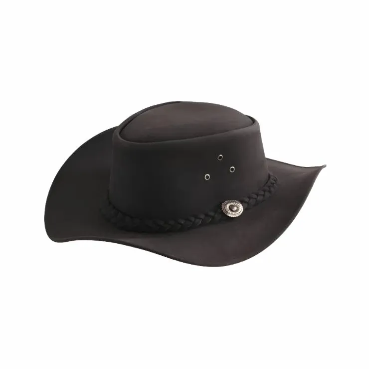 - Souple, en croûte de cuir vachette huilée déperlante, avec aérations et bord souple permettant la mise en forme
