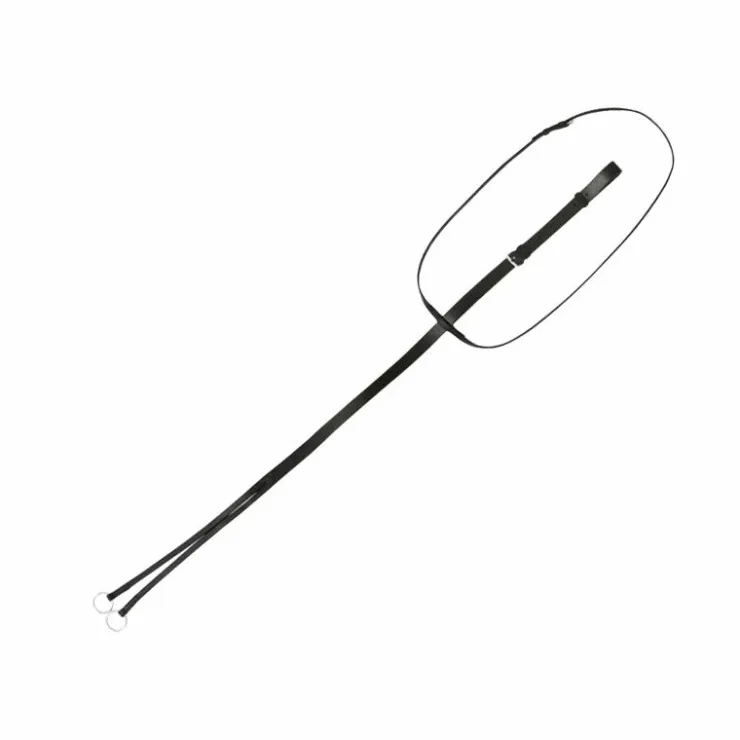 - La martingale à anneaux est un enrênement constitué de 2 courroies : l’une se fixe d’un côté à la sangle et de l’autre côté elle se sépare en 2 parties munies d’anneaux qui coulisseront dans les rênes. La seconde courroie est un collier qui fera le tour de l’encolure, pour maintenir l’enrênement en place. Il faut éviter un réglage trop court qui risque de gêner les mouvements de l’encolure du cheval.