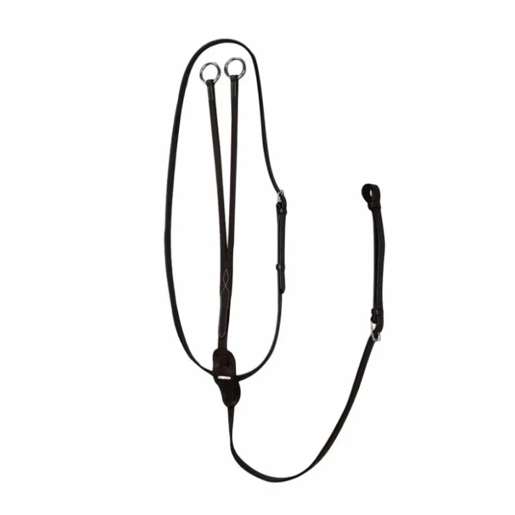 • La martingale à anneaux n’a pas pour but de faire baisser la tête du cheval, mais de l’empêcher de donner des coups de tête.