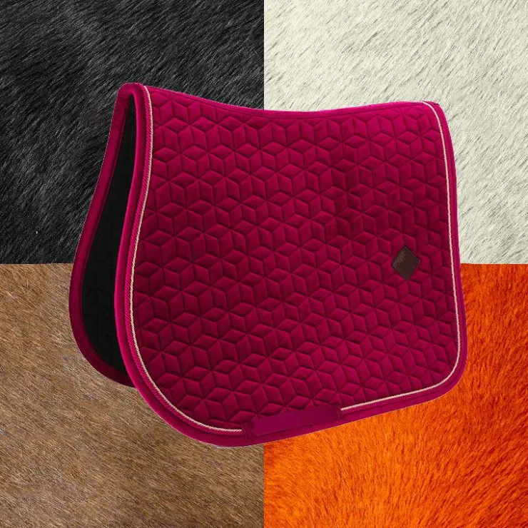 • Le tapis de selle très élégant avec son effet velours et son passepoil à double torsion