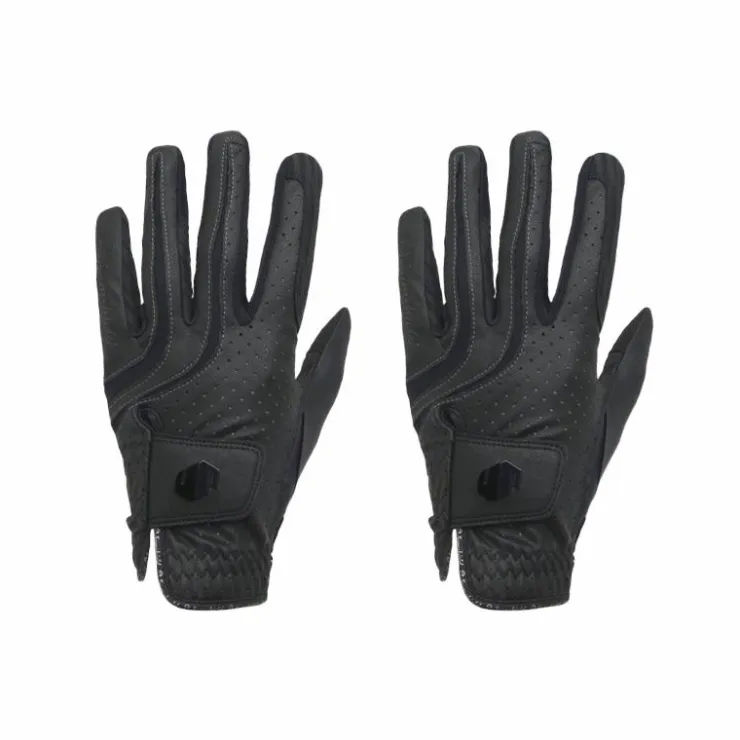 • Au niveau de la paume de la main, la base de tissu est en daim solide avec des empreintes de silicone, offrant une adhérence supplémentaire, une connexion main-cheval et une flexibilité tout en garantissant leur durabilité