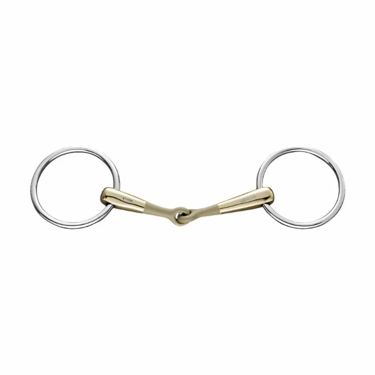 - Mors deux anneaux 16 mm – Sensogan avec anneaux en acier inox. Articulation innovante de l’embouchure, tournée vers l’avant de 45° ce qui signifie que la surface de contact des tiges du mors est de la même longueur des deux côtés, permettant un effet uniforme sur la langue.