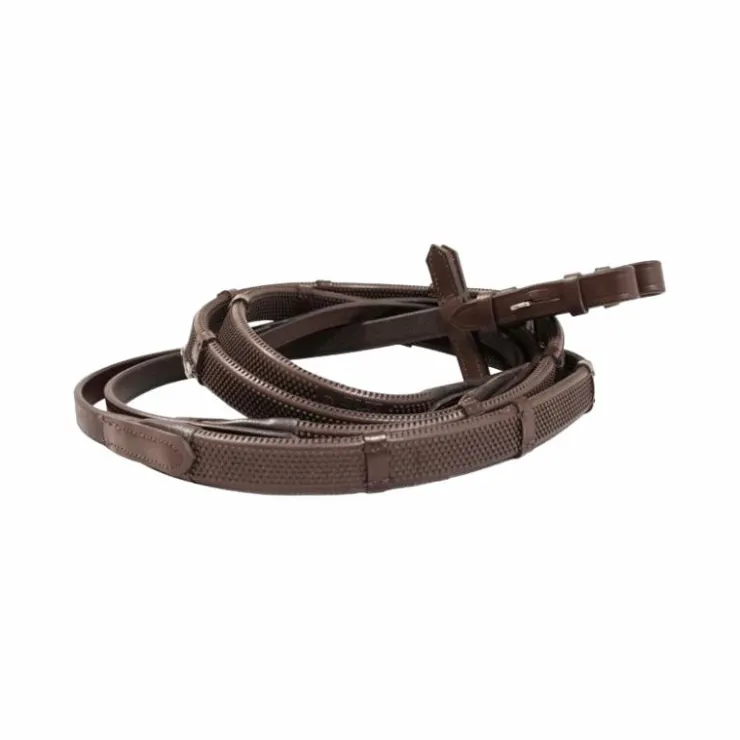 TdeT – Rênes caoutchouc arrétoirs petits picots havane foncé Best