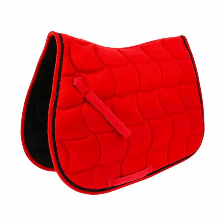 - Tapis de selle en polyester satiné brillant, matelassé de polyfill 200 g/m² et 10 mm de mousse avec doublure nid d’abeille en coton.