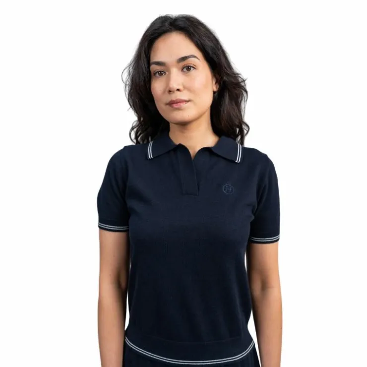• Finitions du col, des manches et du bas du polo par deux liserés blancs