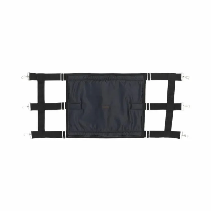 - Très robuste avec intérieur en fausse fourrure, elle est équipée de 6 mousquetons d’attache fixés au bout de sanglons en polypropylène.