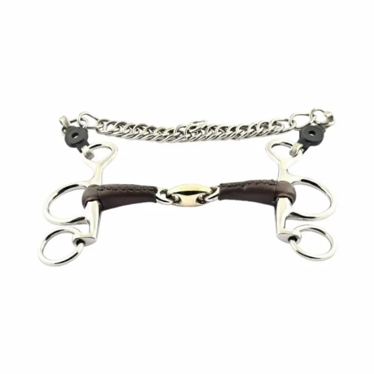 - Les canons gainé cuir permettent un réel confort dans la bouche du cheval, une detente et relaxation sur le cuir tout en gardant la tension du mors en German Silver double brisure