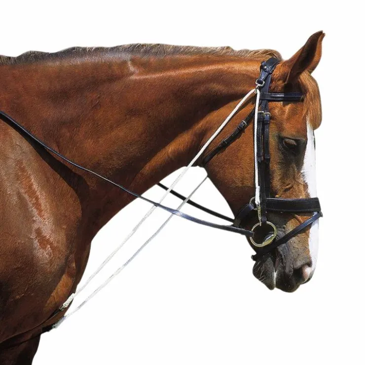 - Enrênement utilisé uniquement pour le travail à la longe – il est destiné à inciter le cheval à orienter son encolure vers le bas et loin devant, sans pour autant le soustraire à l’action du mors.