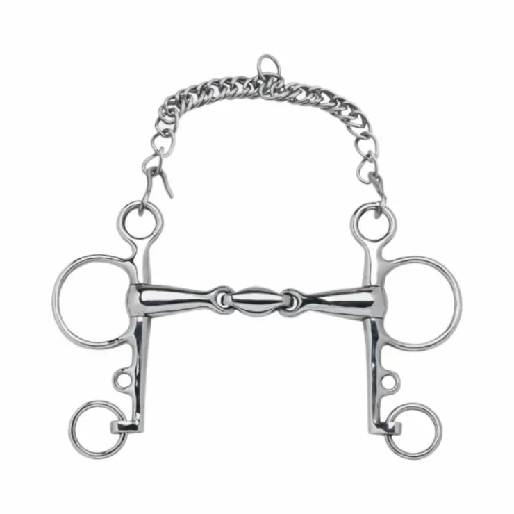Le pelham peut être utilisé avec 2 ou 4 rênes. De même, il est possible de l’utiliser sans gourmette pour adoucir son action sur la bouche.