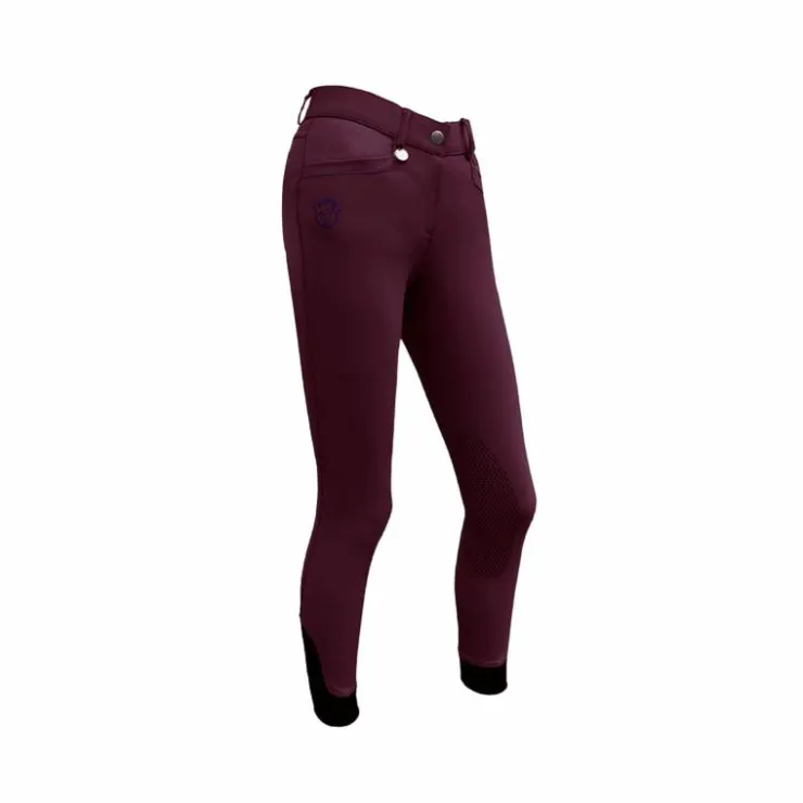 - L’intérieur des genoux est doté d’un fin grip qui améliore la fixité du cavalier sans le bloquer.