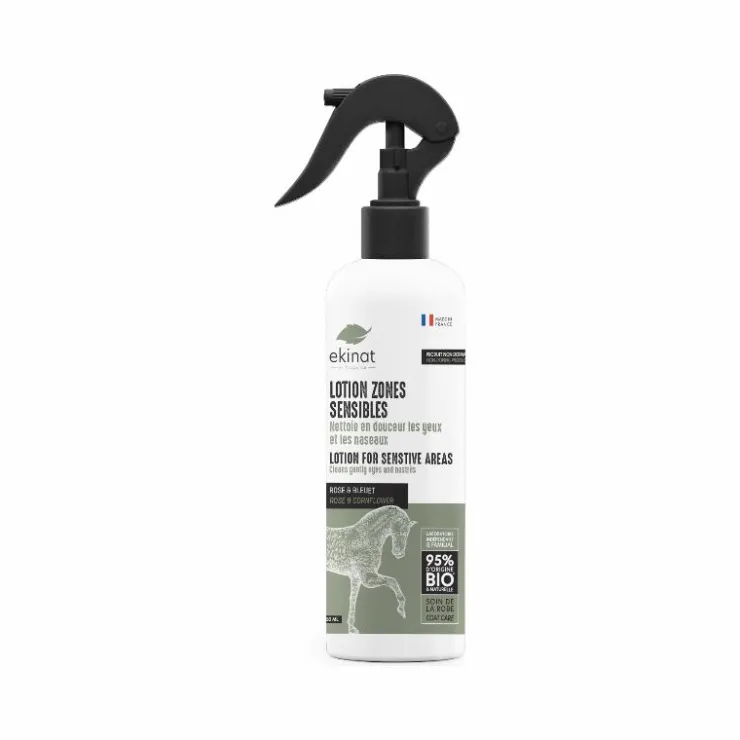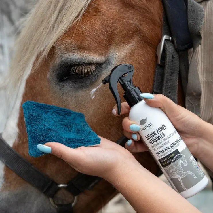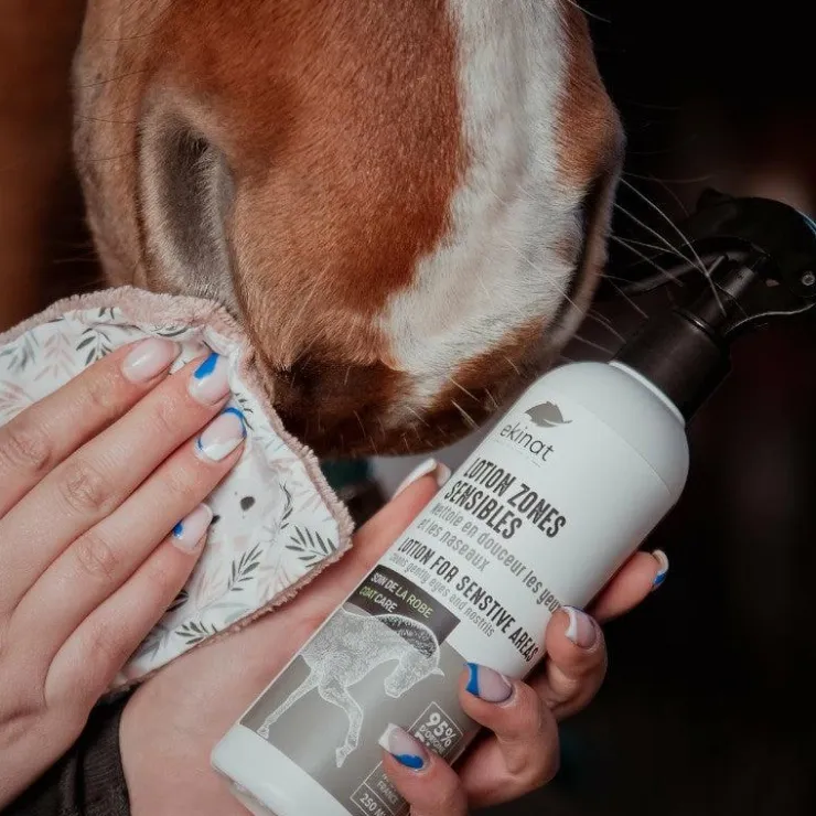 - Apaise les zones sensibles (yeux, naseaux) du cheval