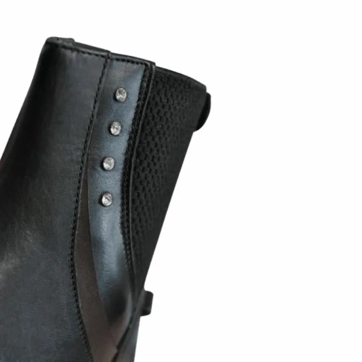 - Liserés de cuir contrasté et petits strass