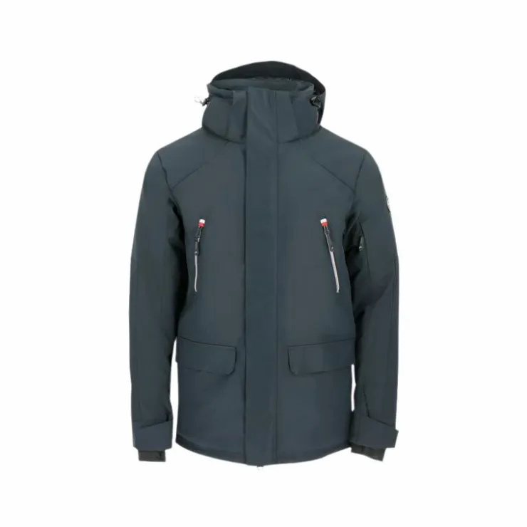 - Caractéristiques : Les tissus extérieurs sont laminés : imperméable 5000 Schmerber / respirant 5000 MVTR. Les fermetures frontale zippée et fermeture frontale double sens. Capuche amovible, capuche ajustable, poches main fermées par rabats pressionnés, poches poitrines zippées, manchons en tissu élastique.