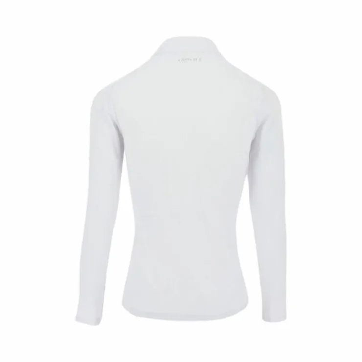 Ce polo a une matière très souple et confortable. Un vrai coup de cœur ! Les manches longues améliorent la silhouette. La matière est stretch et conforable. C’est le polo parfait pour celles aimant les jolies dentelles fines en plumetis. Ici porté en taille S.