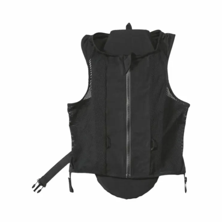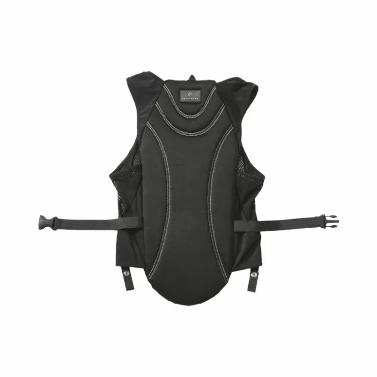 - Protection dorsale composée d’un gilet à fermeture glissière en 85% polyamide, 15% polyester garni de plusieurs couches de mousse à haute densité légère et souple, et équipé d’une ceinture de réglage élastique