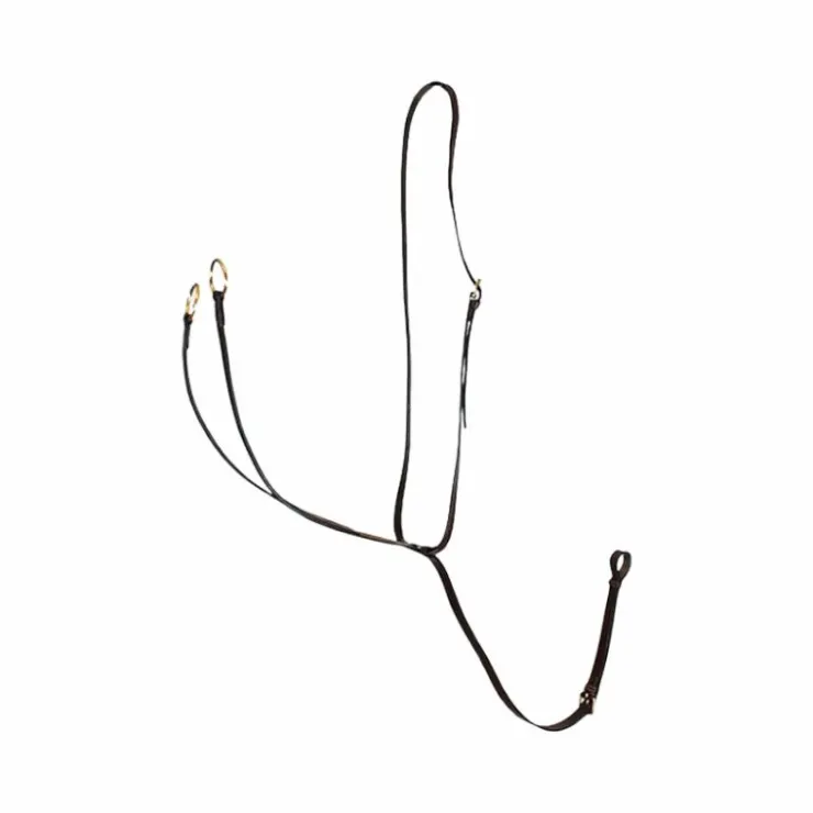 • La martingale à anneaux est un enrênement constitué de 2 courroies : l’une se fixe d’un côté à la sangle et de l’autre côté elle se sépare en 2 parties munies d’anneaux qui coulisseront dans les rênes.