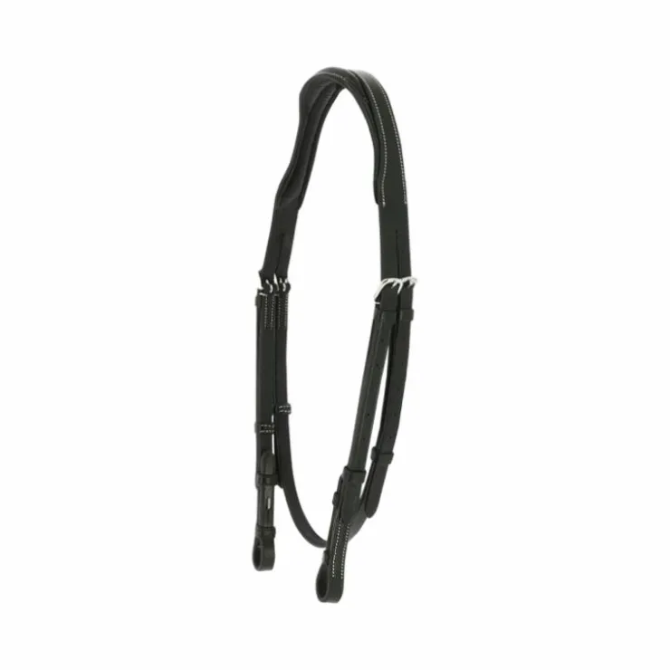 - Têtière de forme découpée, doublée cuir vachette matelassé.