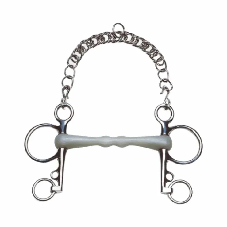 Le Pelham peut être utilisé avec 2 ou 4 rênes. De même, il est possible de l’utiliser sans gourmette pour adoucir son action sur la bouche.