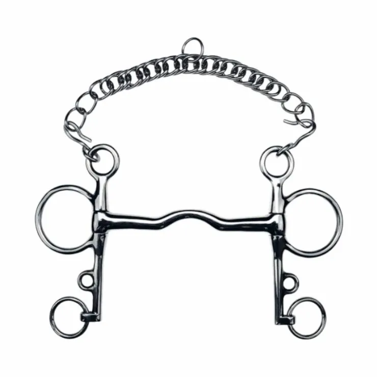 Le pelham peut être utilisé avec 2 ou 4 rênes. De même, il est possible de l’utiliser sans gourmette pour adoucir son action sur la bouche.