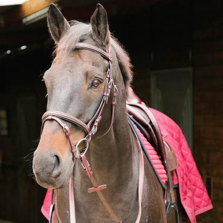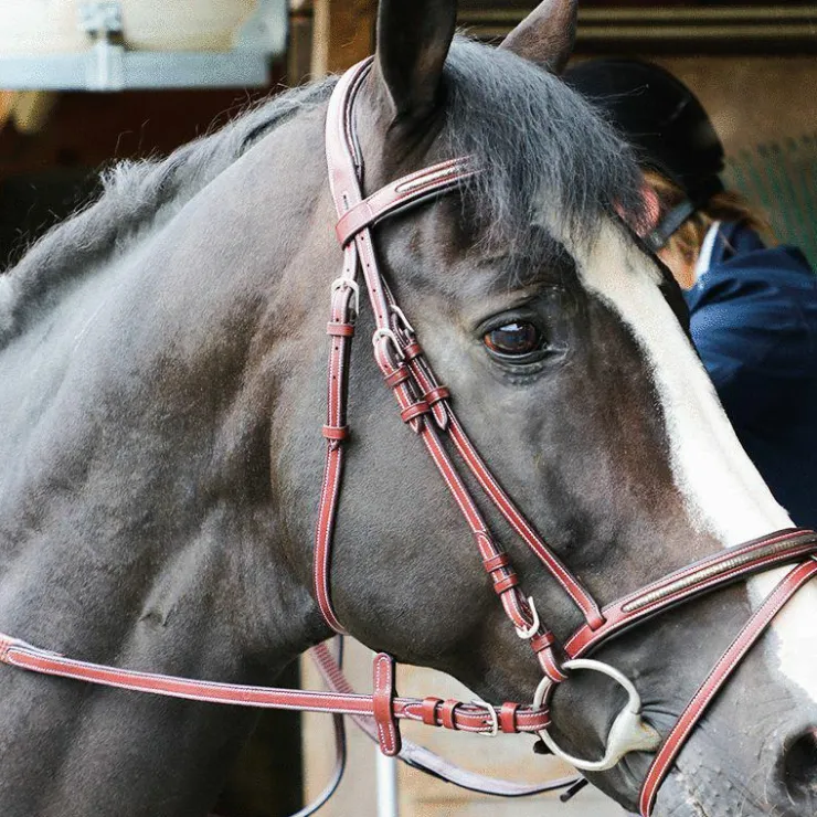 - Frontal et muserolle combinée, doublés et bombés 1/2 rond cuir brillant