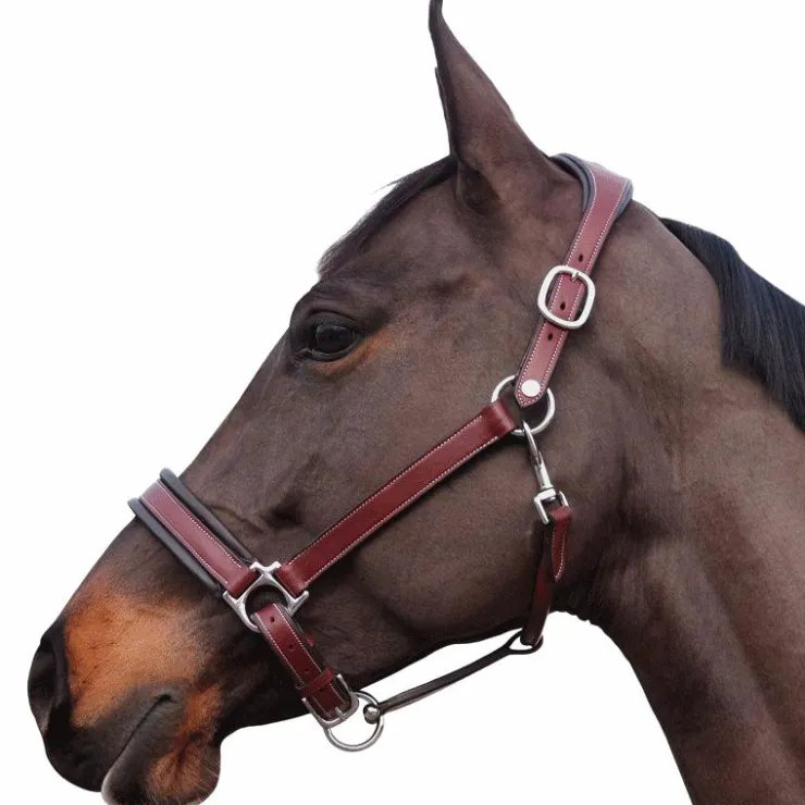 - Têtière anatomique doublée pour plus de confort, munie de 2 boucles d’ajustage Muserolle en cuir plat avec doublure extra large en cuir soft