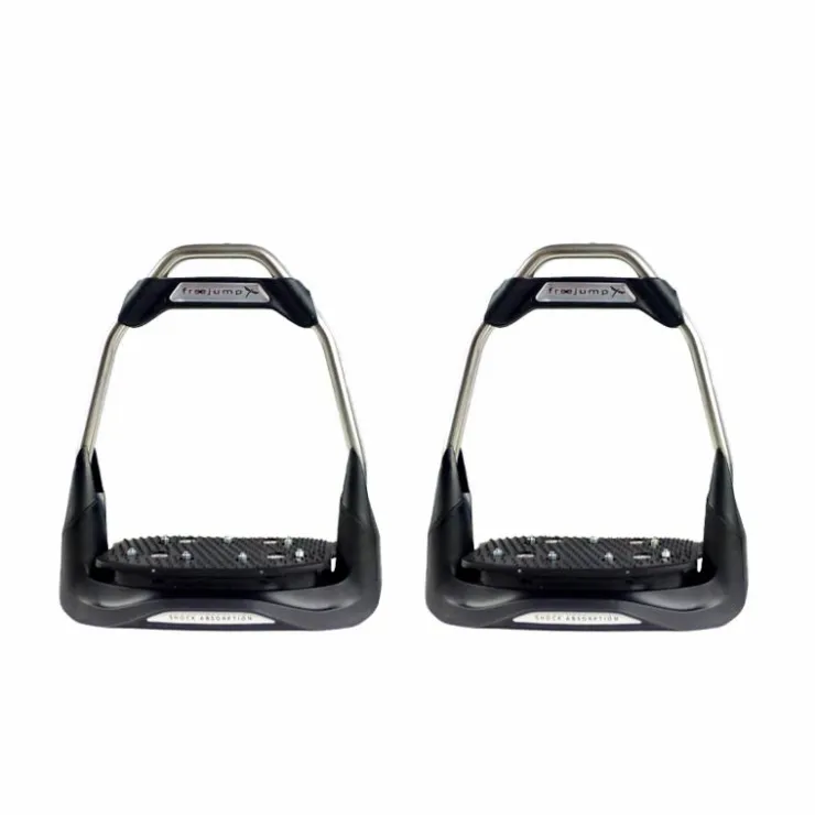 Connue pour son innovation et son expertise, Freejump propose des étriers de haute qualité qui allient performance, confort et sécurité. Les étriers Freejump se distinguent par leur système de dégagement rapide unique, permettant au cavalier de libérer facilement son pied en cas de chute ou d’urgence. Ce mécanisme innovant offre une tranquillité d’esprit et une protection supplémentaire lors de la pratique équestre. Les étriers Freejump sont conçus avec une plateforme large et antidérapante, offrant une excellente adhérence et une stabilité optimale pendant l’équitation. De plus, ils intègrent un système d’amortissement des chocs pour réduire la pression sur les articulations du cavalier. Freejump propose également une variété de modèles et de designs pour répondre aux préférences individuelles des cavaliers.