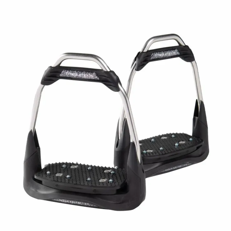 Connue pour son innovation et son expertise, Freejump propose des étriers de haute qualité qui allient performance, confort et sécurité. Les étriers Freejump se distinguent par leur système de dégagement rapide unique, permettant au cavalier de libérer facilement son pied en cas de chute ou d’urgence. Ce mécanisme innovant offre une tranquillité d’esprit et une protection supplémentaire lors de la pratique équestre. Les étriers Freejump sont conçus avec une plateforme large et antidérapante, offrant une excellente adhérence et une stabilité optimale pendant l’équitation. De plus, ils intègrent un système d’amortissement des chocs pour réduire la pression sur les articulations du cavalier. Freejump propose également une variété de modèles et de designs pour répondre aux préférences individuelles des cavaliers.