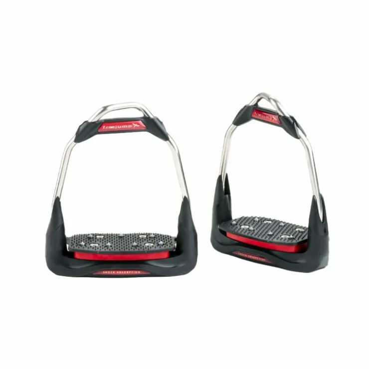 Connue pour son innovation et son expertise, Freejump propose des étriers de haute qualité qui allient performance, confort et sécurité. Les étriers Freejump se distinguent par leur système de dégagement rapide unique, permettant au cavalier de libérer facilement son pied en cas de chute ou d’urgence. Ce mécanisme innovant offre une tranquillité d’esprit et une protection supplémentaire lors de la pratique équestre. Les étriers Freejump sont conçus avec une plateforme large et antidérapante, offrant une excellente adhérence et une stabilité optimale pendant l’équitation. De plus, ils intègrent un système d’amortissement des chocs pour réduire la pression sur les articulations du cavalier. Freejump propose également une variété de modèles et de designs pour répondre aux préférences individuelles des cavaliers.