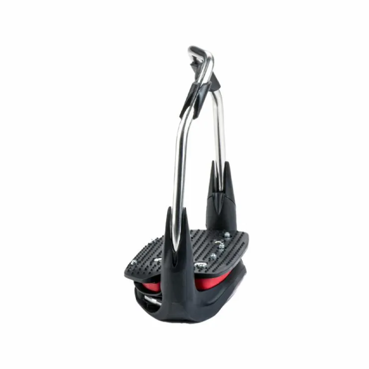 • Le plancher offre un super grip et vous offrira une meilleure adhérence à cheval. Une intégration de fibre de carbone va garantir une longévité et les crampons amovibles en acier vont accentuer l’effet grippant