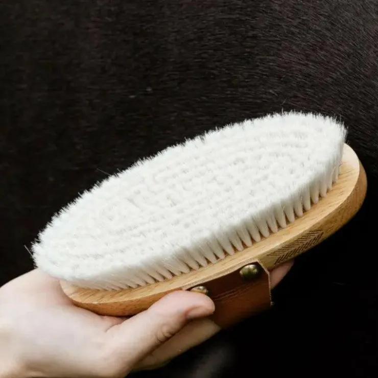 • La forme ovale de la brosse et son petit format, la rendent facile à la manipulation et pratique pour atteindre toutes les zones du corps de votre cheval