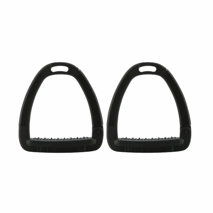 • Semelle de l’étrier anatomique avec une inclinaison à 5° aidant à maintenir le talon du pied vers le bas