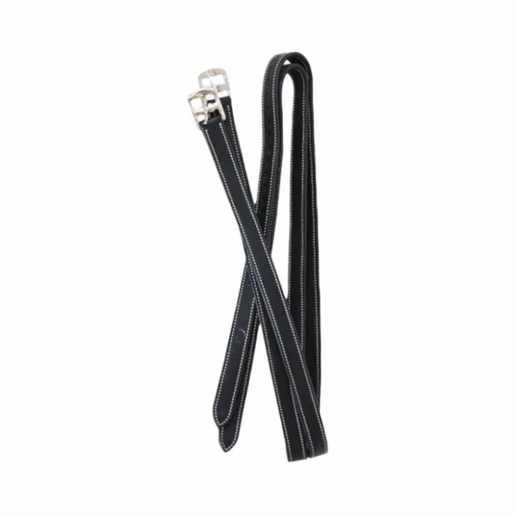 • Étrivières en cuir vachette renforcée sangle polypropylène