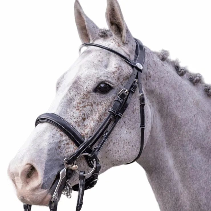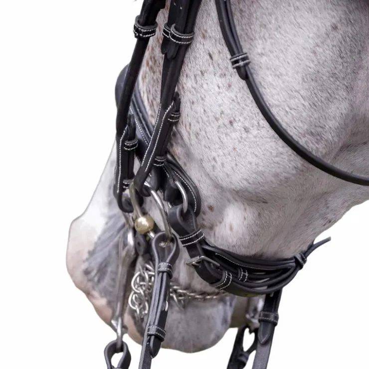 - Bride avec frontal rond verni et muserolle large système pull-back
