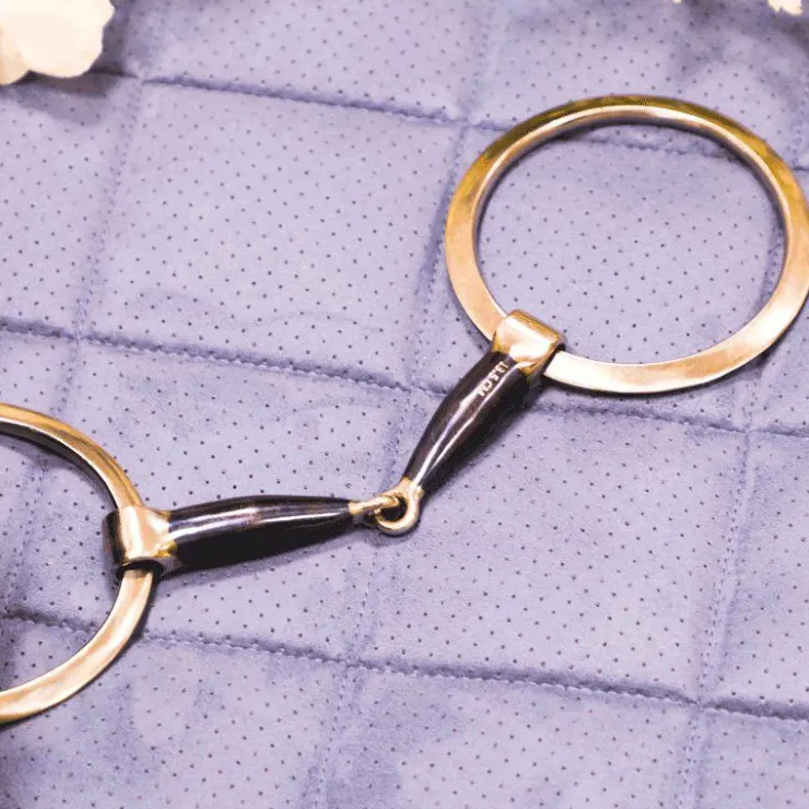 Les mors en Sweet Iron s’oxydent au contact de l’air et de l’humidité. Il apparait alors une fine couche de rouille, celle-ci ayant un goût sucré, stimule naturellement le production de salive. En salivant plus, le cheval prend plus de contact sur son mors. Le processus d’oxydation va changer la couleur en gris/brun
