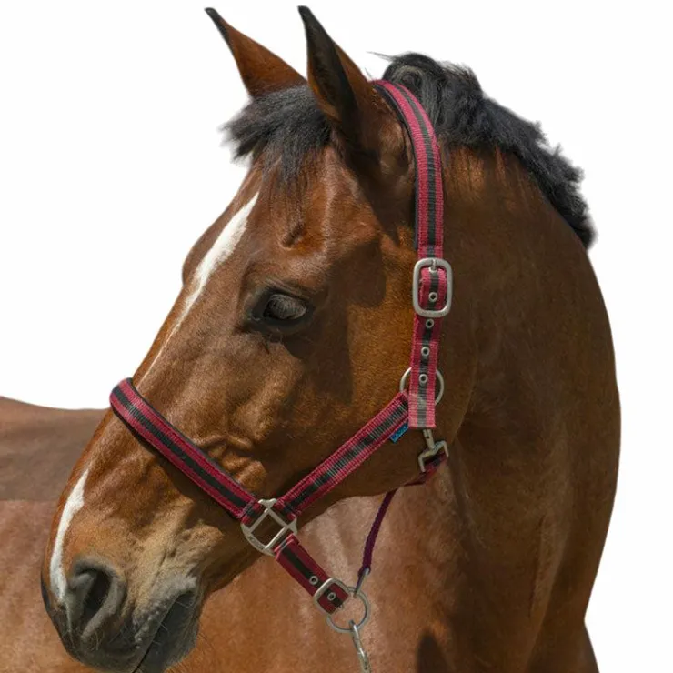 • Têtière et muserolle réglables avec un mousqueton de sous gorge.