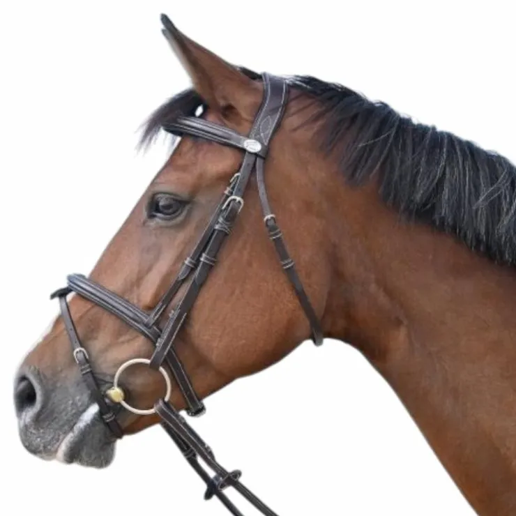 • Frontal et muserolle surmontés par un cuir carré surpiqué en blanc
