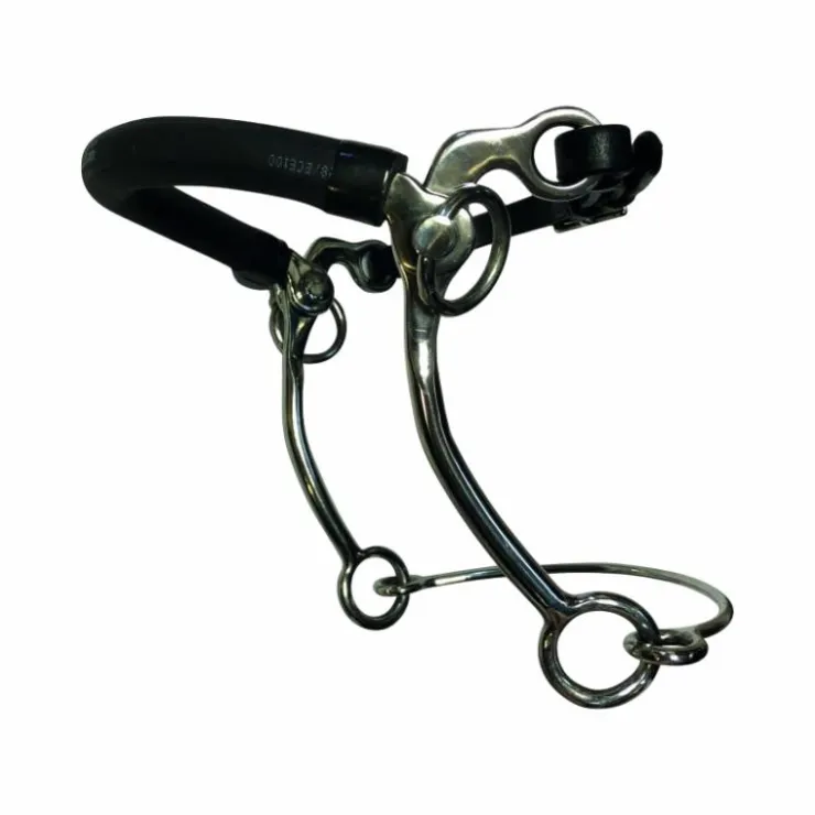 - C’est une embouchure assez sévère et difficile à utiliser pour certains cavaliers car il faut garder le contact sur les deux rênes en même temps. Si on tourne sur une seule rêne, le hackamore tourne… mais pas le cheval. Pour autant, avec des branches courtes et du confort au niveau de la muserolle, il peut donner une sensation de tension dans le contact, ce qui peut être appréciable avec certains chevaux délicats.