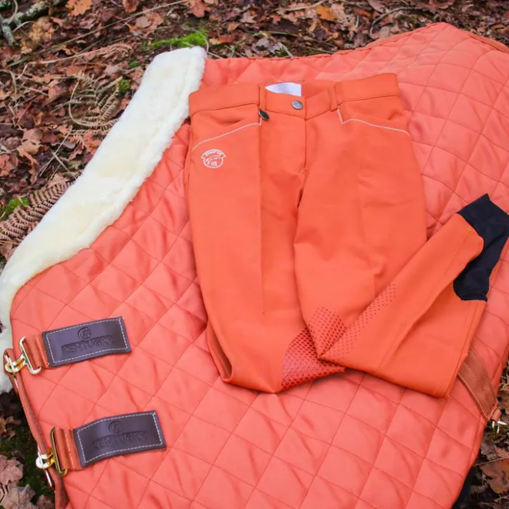 - L’intérieur des genoux est doté d’un fin grip qui améliore la fixité du cavalier sans le bloquer.