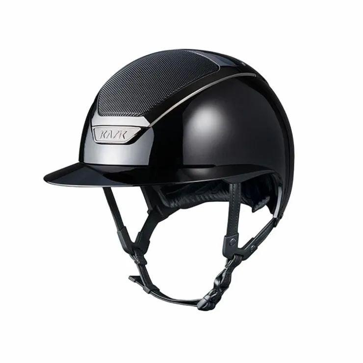 - Le système de réglage auto-adaptatif breveté de KASK au look carbone, introduit pour la première fois sur le marché équestre, permet au casque de s’adapter parfaitement et automatiquement à la tête du cavalier en berçant doucement l’arrière de la tête.