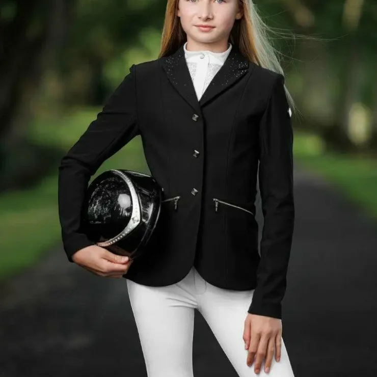 • Détails avec des cristaux sur le col, la ceinture arrière et les extrémités de la queue pour donner une touche raffinée