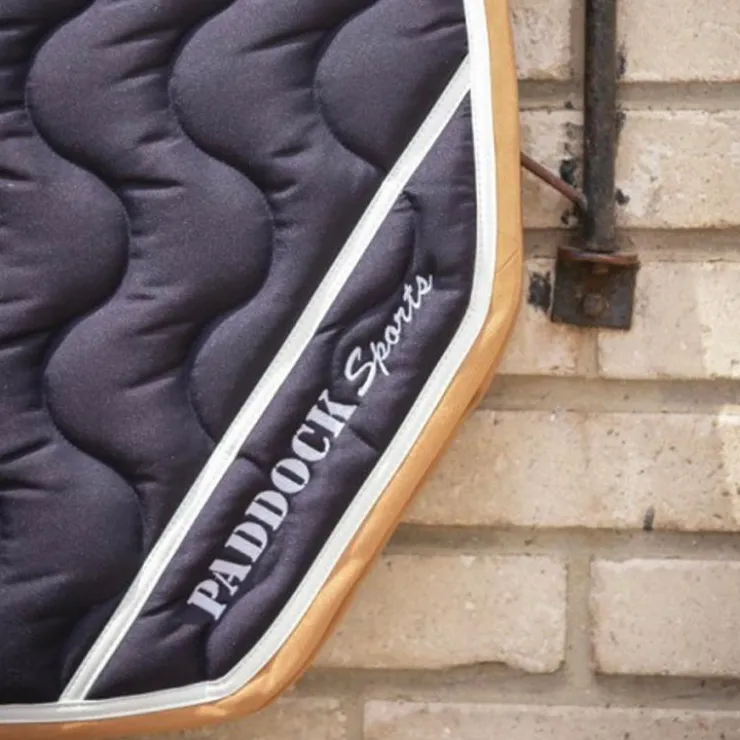 - Le logo Paddock Sports est toujours brodé sur le côté gauche du tapis, assorti aux coloris des galons.
