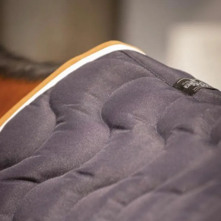 - Tapis de selle forme sport fabriqué en France doublé en coton nid d’abeille. Le motif est en forme de vague à la verticale.